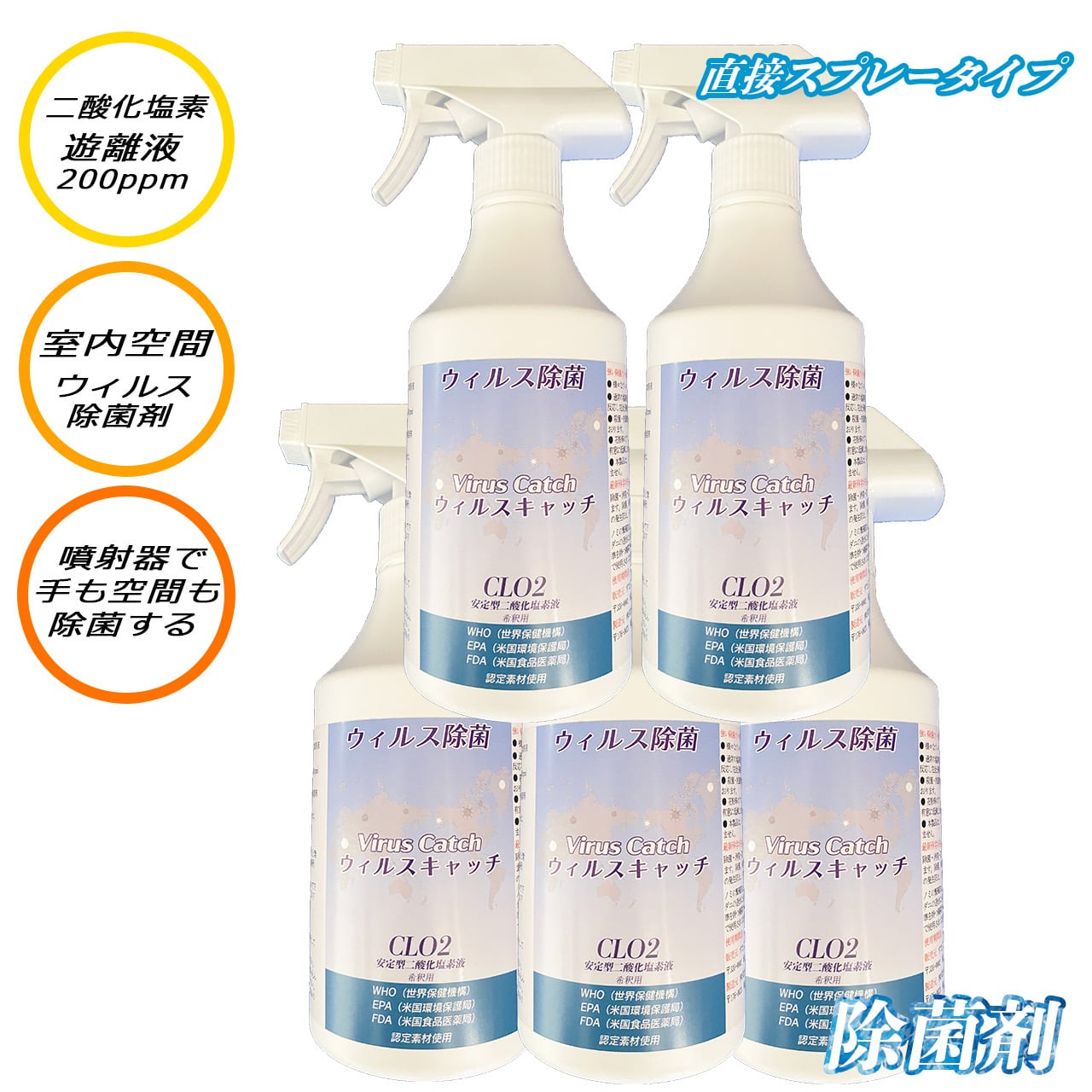 ウィルスキャッチ・二酸化塩素遊離液200ppm【500ml×5本】スプレータイプ