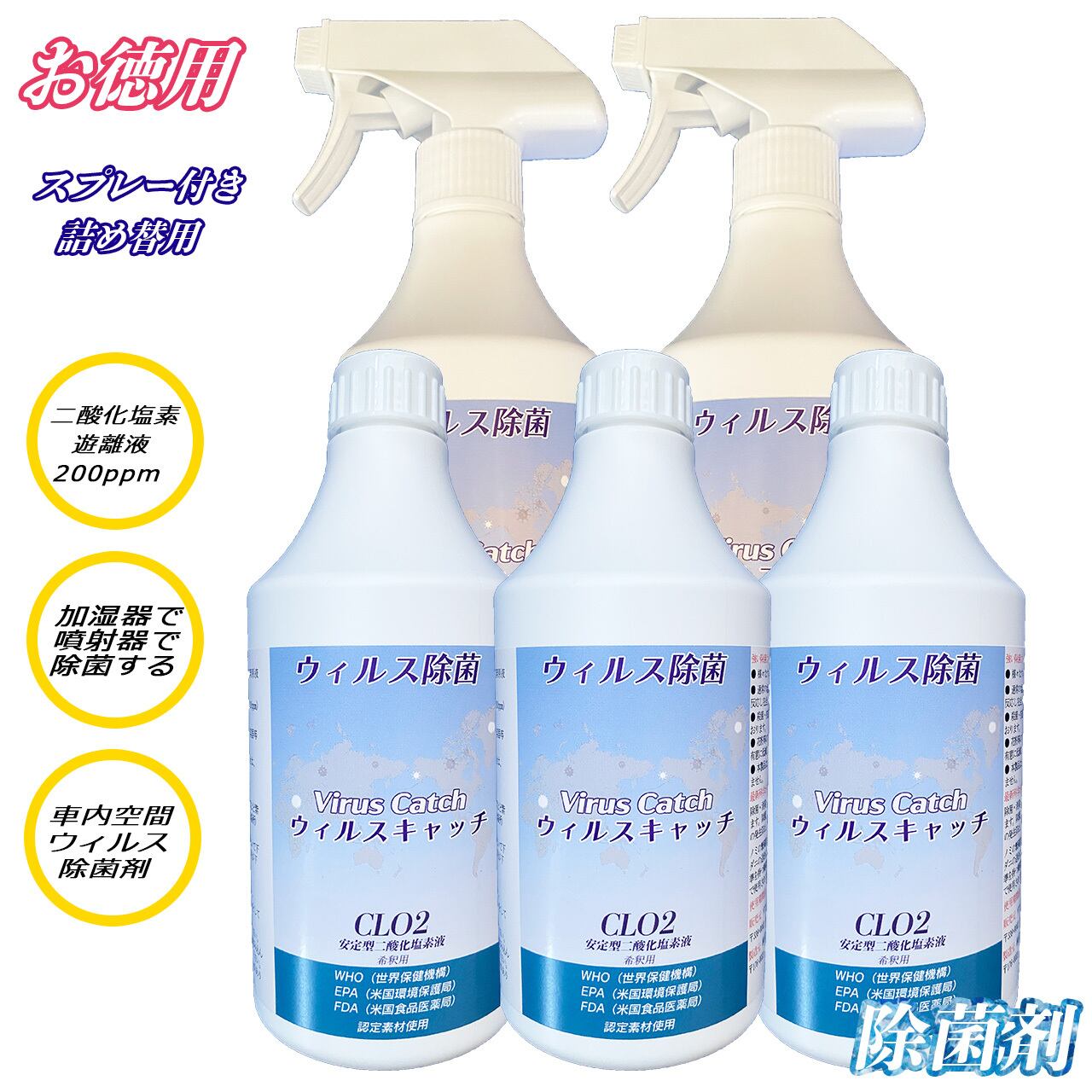 ウィルスキャッチ・二酸化塩素遊離液200ppm【500ml×5本】スプレー&詰め替えタイプ